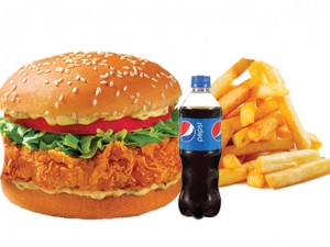 Crispy Burger, French Fries (Combo), Ketchup, 250 ML Soft Drinks