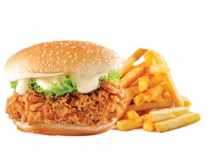 Chilly Chicken Burger, French Fries (Combo), Ketchup, 250 ML Soft Drinks