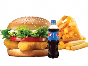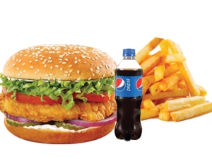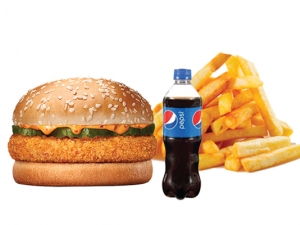 Chicken Patty Burger, French Fries (Combo), Ketchup, 250 ML Soft Drinks