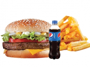 Beef Burger, French Fries (Combo), Ketchup, 250 ML Soft Drinks