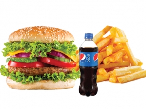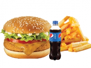 Vegetable Burger, French Fries (Combo), Ketchup, 250 ML Soft Drinks