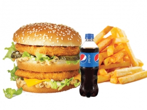 Chicken Patty Double Burger, French Fries (Combo), Ketchup, 250 ML Soft Drinks